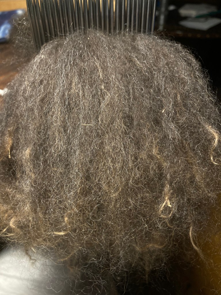 I comb everything so VM isn’t a deal breaker for me, not even heavy VM. It has become one of my favorite fleeces ever! So far, I have only made the one skein in trade. I have much more of it to process and spin. I hope to get back to it soon.