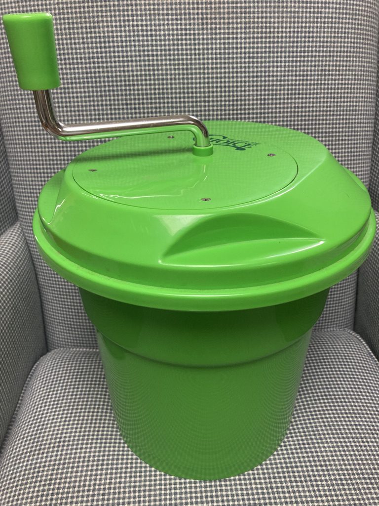 That green thing above is a 2.5 gallon salad spinner. It does a pretty good job as a manual way of getting even more water out of the fleece than just squeezing with my hands. I have also used a large laundry net bag and let centrifugal force do the work. Let me just say, the salad spinner is much easier on my arms.